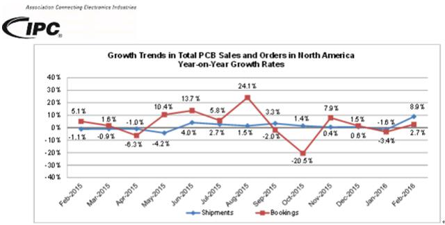 2016年2月份北美PCB總出貨量,與2015年同期相比,上升了8.9%;年初至今的出貨量增長3.6%;與上個(gè)月相比,增長了10.1%。